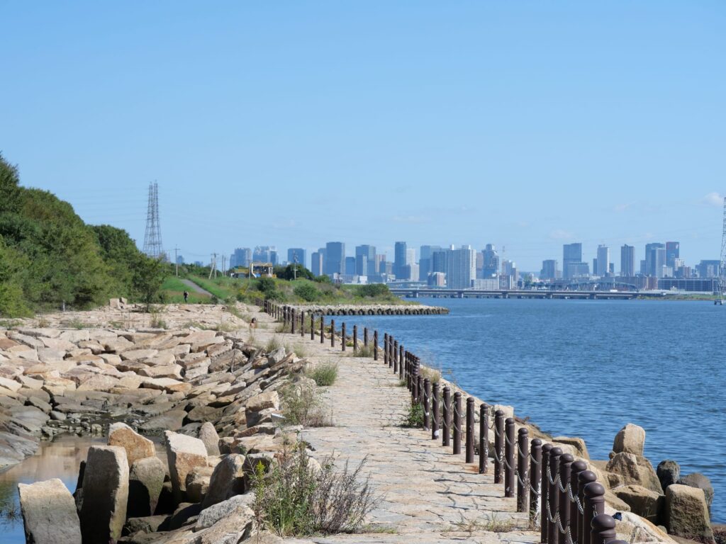 広大な淀川と神崎川に挟まれた公園からは、大阪湾を一望でき、都市公園ではなかなか出会えない豊かな自然や水辺の生き物を見ることができます。釣りや潮だまり、干潟での自然観察といった本格的な体験から、海風を受けながらのピクニックまで、訪れる人それぞれが自分だけの「憩い」を見つけられるスポットです。