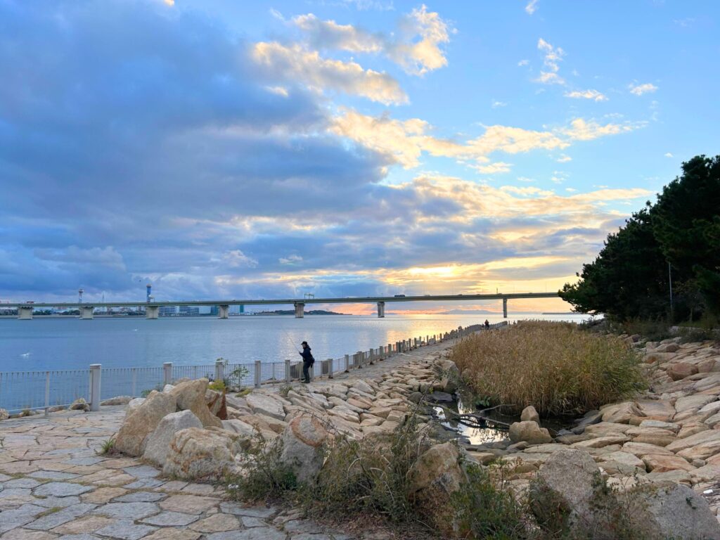 都市の喧騒を離れ、潮風と緑に抱かれる矢倉緑地。
